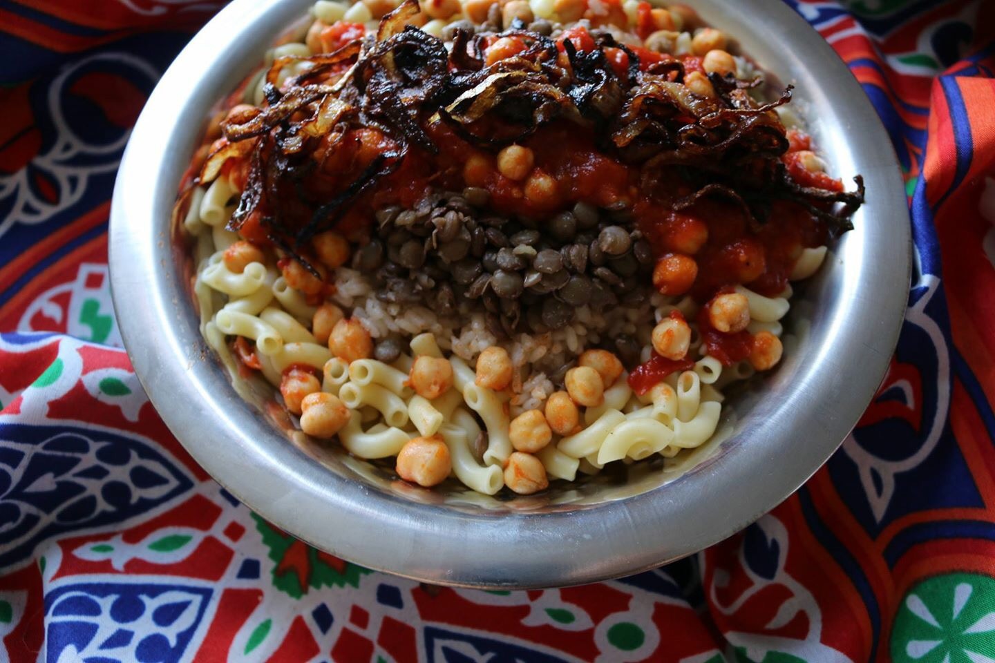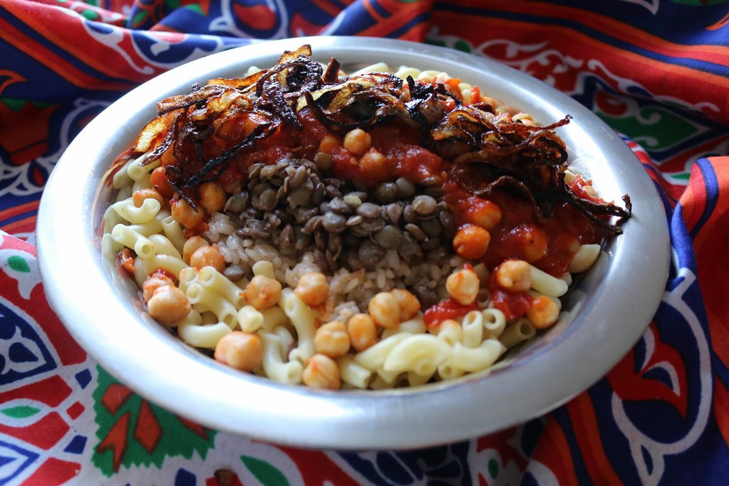 koshari is egypt’s national dish. it’s a cheap eat and in cairo, you’ll often find it being served up at street stands, hole-in-the-walls, restaurants and basically everywhere. it’s carb on carb goodness that reminds you of your mother’s cooking…even if, like me, your non-egyptian mother never really made it.